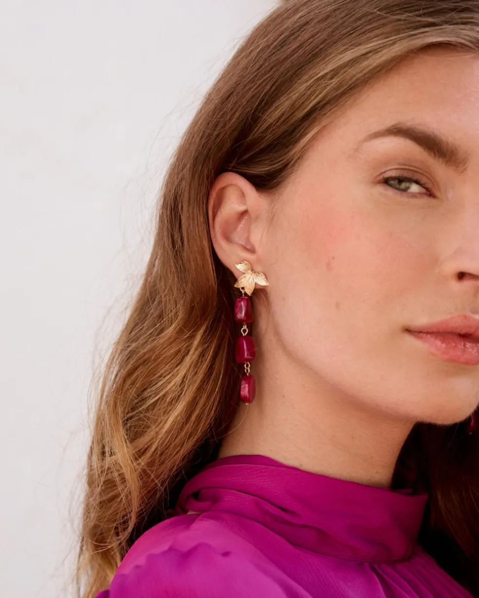 Pendientes de resina en tono cereza con detalles dorados.