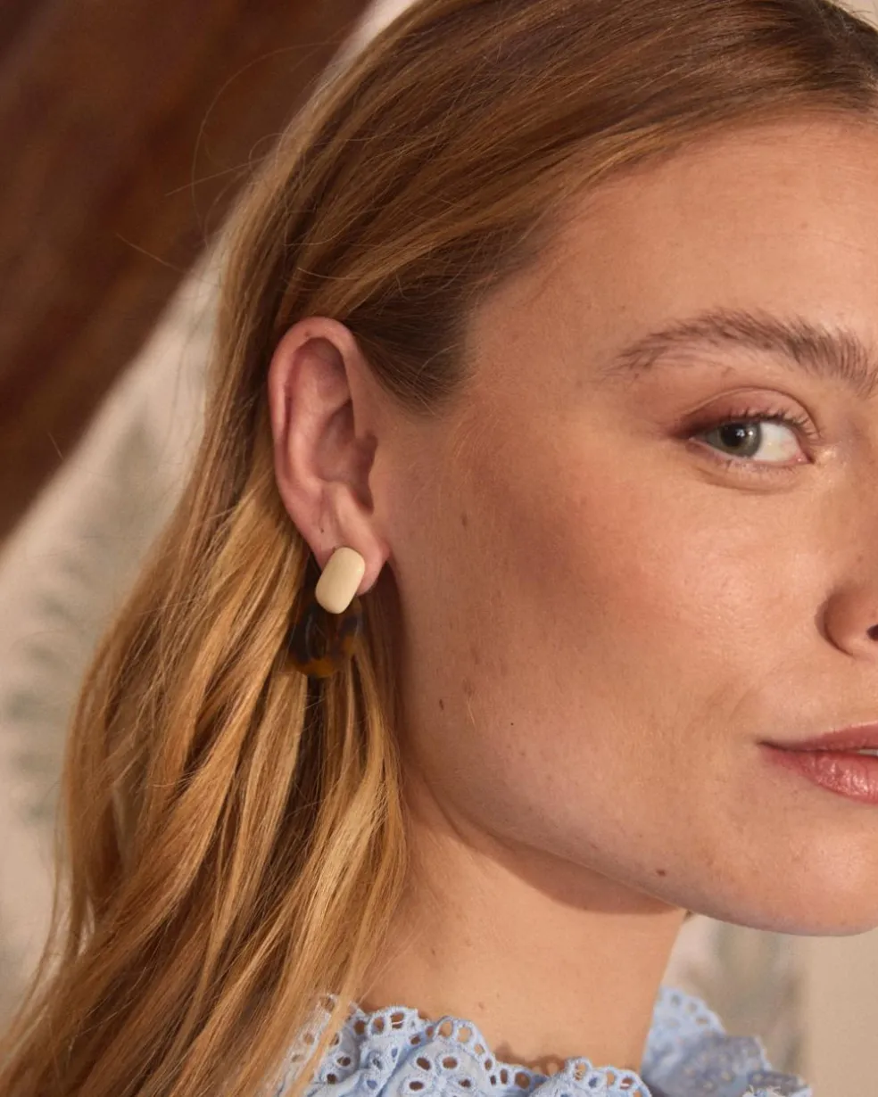 Pendientes de dos piezas con parte superior blanca y parte inferior en carey.