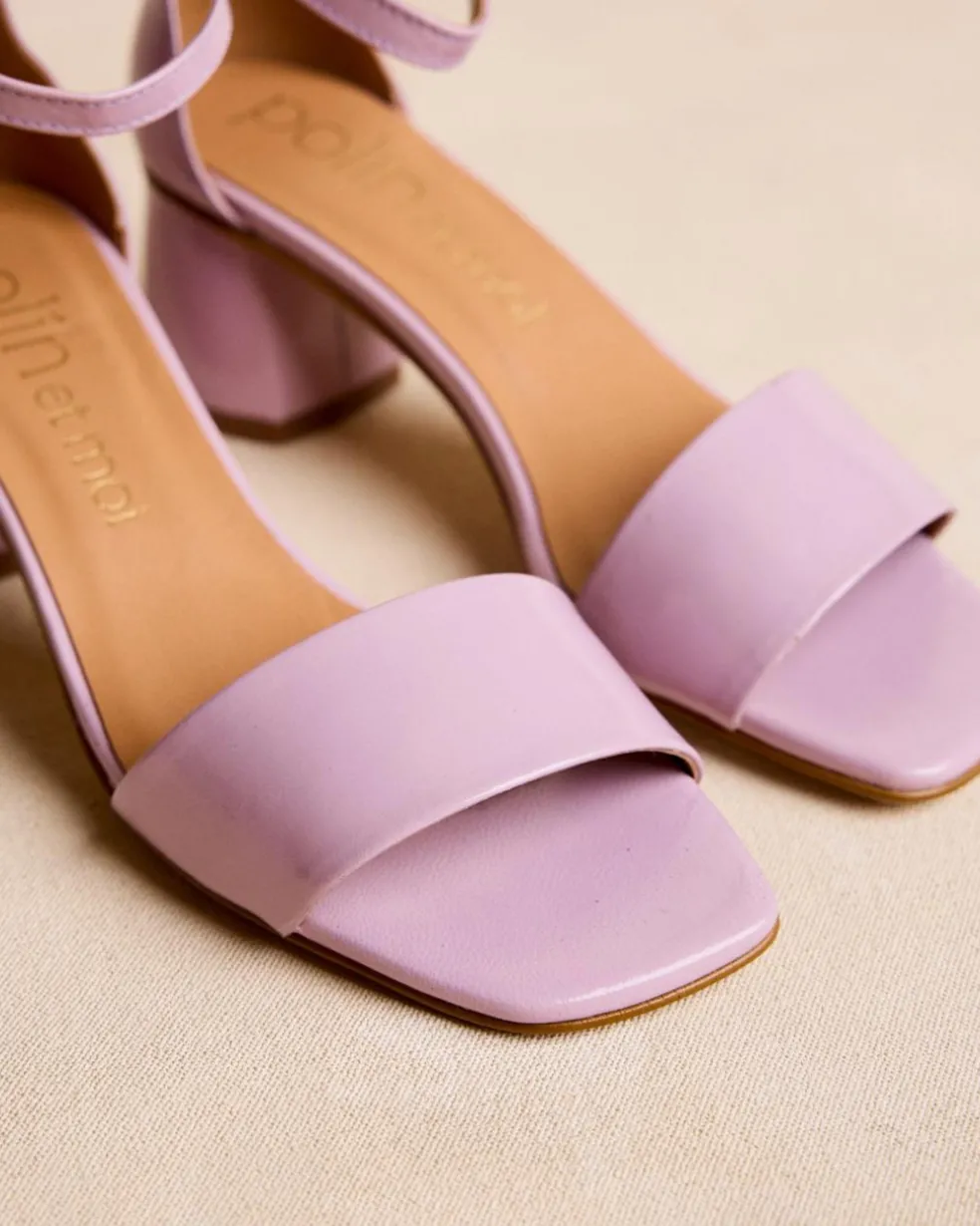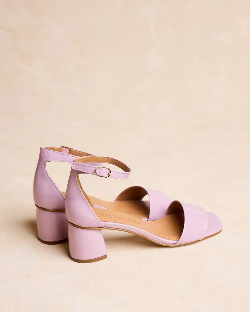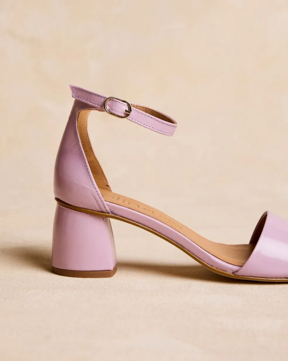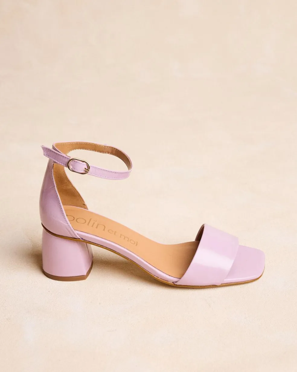 Sandalia de tacón en color maquillaje. Punta cuadrada con las esquinas ligeramente redondas. Escote con una cinta. Cierre al tobillo mediante correa regulable con hebilla cuadrada. Un zapato elegante y cómodo.